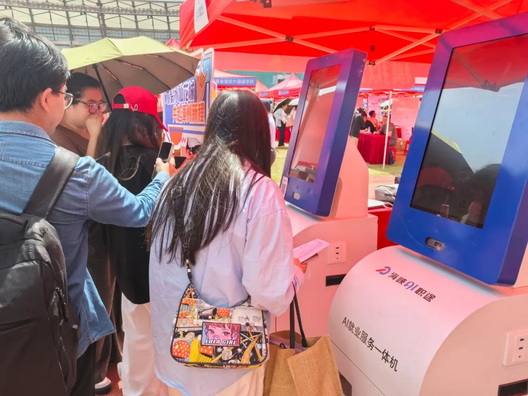 招聘会现场还创新引入“AI职途舱”,吸引了不少退役大学生士兵前来体验。据介绍,“AI职途舱”可以为求职者提供AI简历优化、智能面试模拟、职业测评等个性化的AI就业指导服务,助力求职者提升求职技巧。