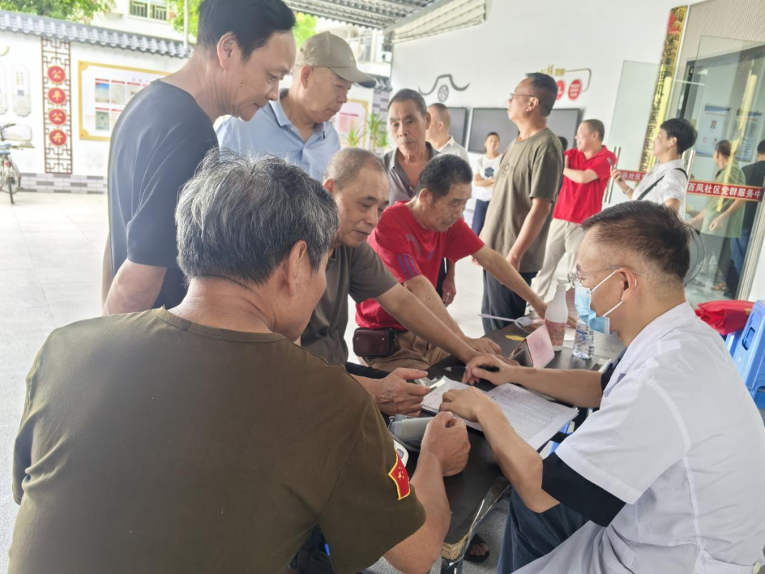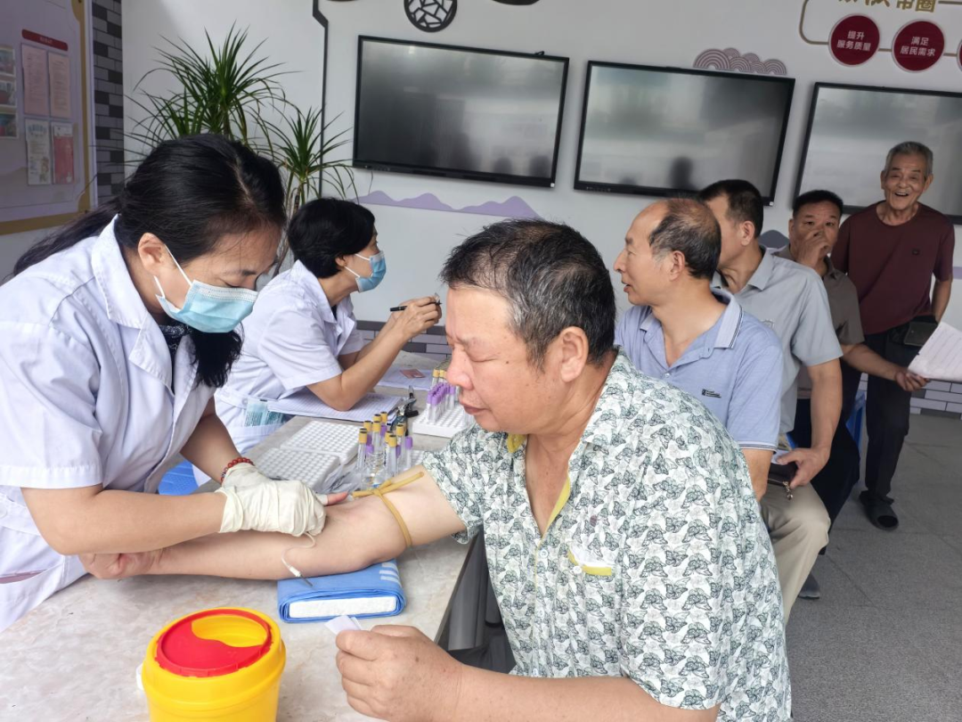 22日,在百凤社区集中诊疗点,优抚对象正在做抽血化验