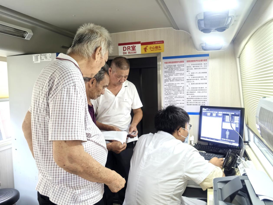 24日,敖江镇优抚对象在巡诊车上排队做X光拍片检查
