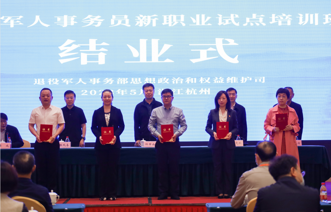 近日,退役军人事务员新职业试点培训班在浙江省杭州市举办。图为结业式上,为80名通过考核的全国首批退役军人事务员培训师资颁发师资证书。