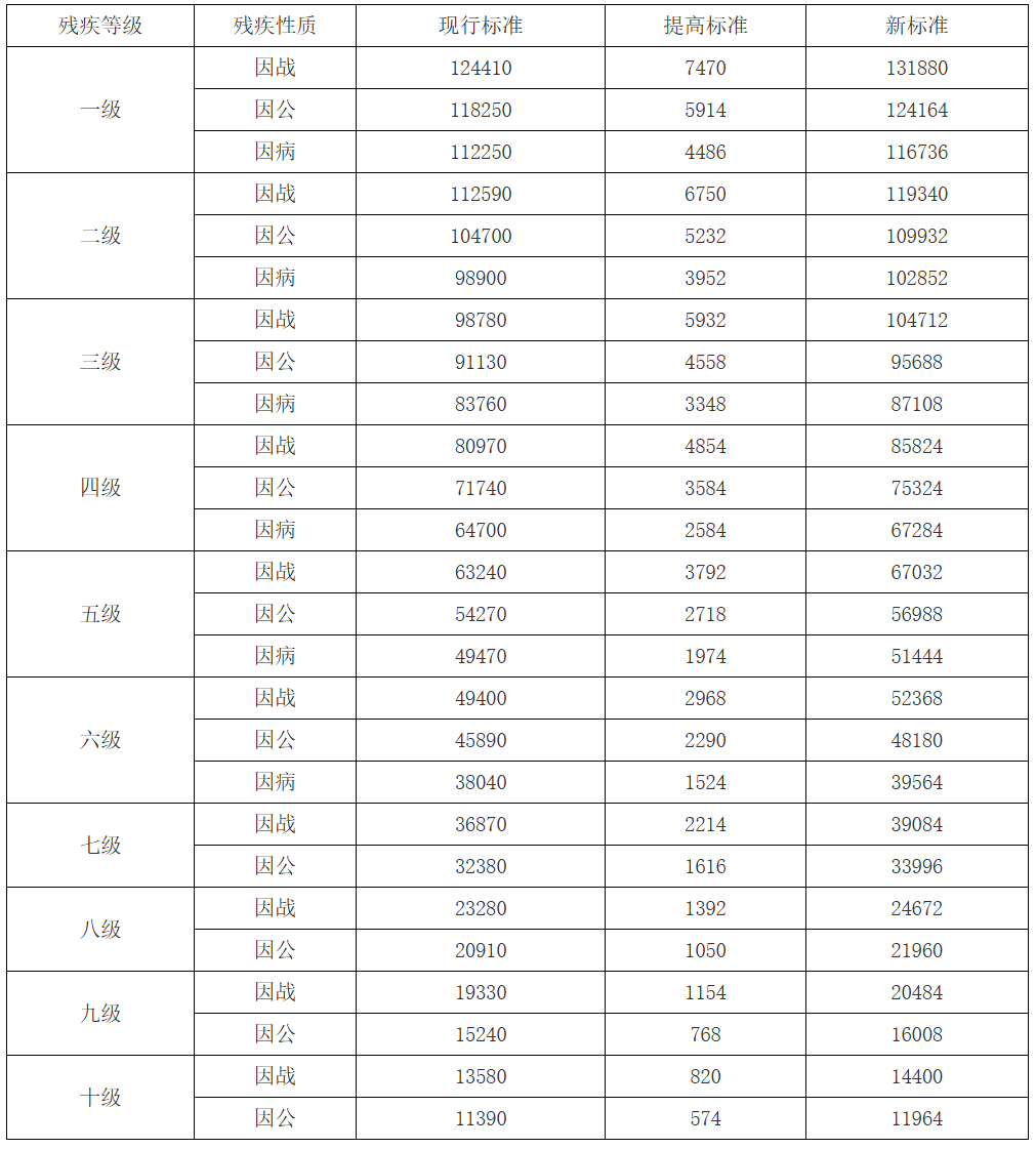 附件:1.残疾军人、伤残人民警察、伤残预备役人员和民兵民工、其他因公伤残人员残疾抚恤金标准表