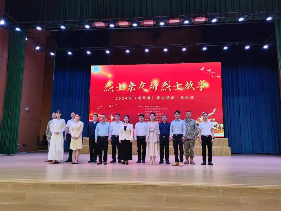 本次宣讲活动由福建省退役军人事务厅、中共泉州市委党史办、泉州市退役军人事务局主办,福建省烈士纪念设施保护中心、驻惠某部队、福建广电网络集团泉州分公司、惠安县退役军人事务局、福建省纵横保安集团有限公司承办。省退役军人事务厅副厅长蔡静南、省厅优抚处处长潘永意、泉州市退役军人事务局副局长王志明、惠安县政府副县长郭惠卿、驻惠安部队领导等人出席,省市县镇退役军人事务系统干部、驻惠部队代表、退役军人代表、学生代表约300多人参加。