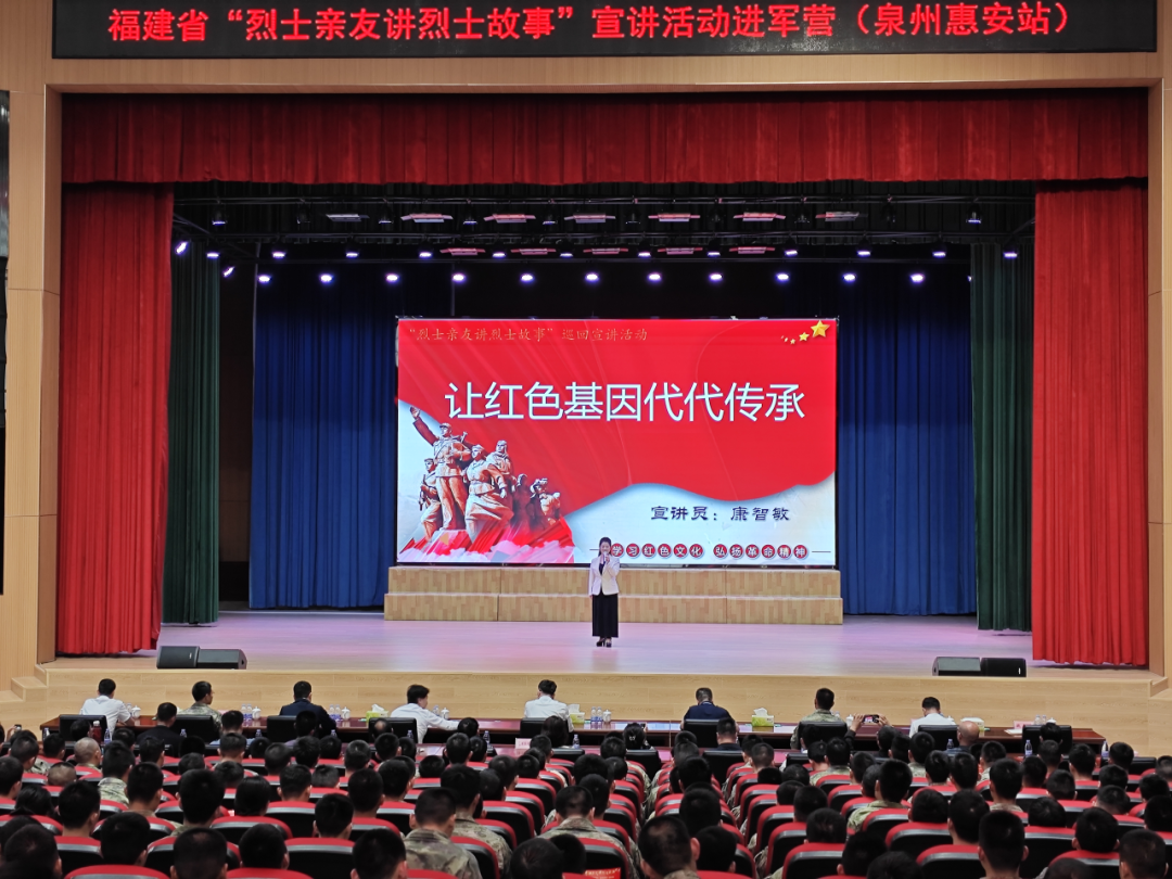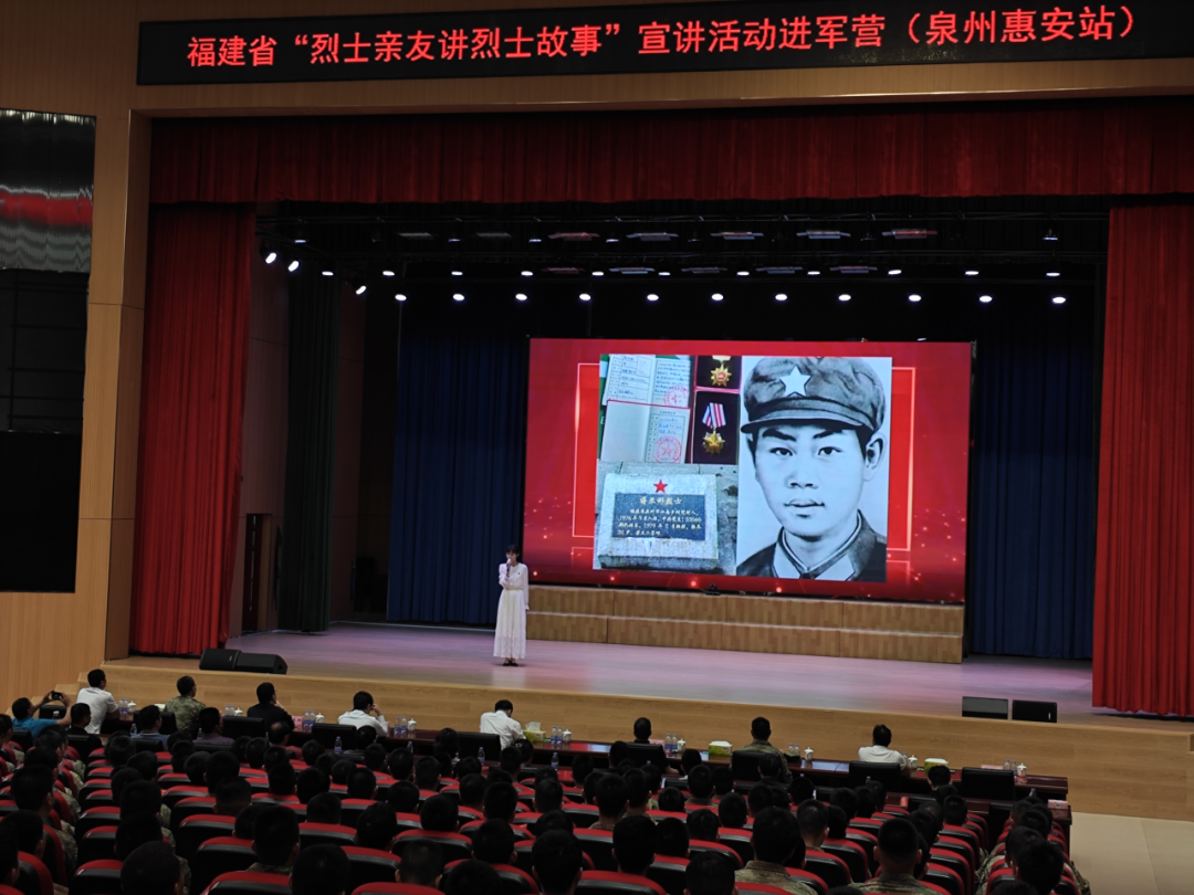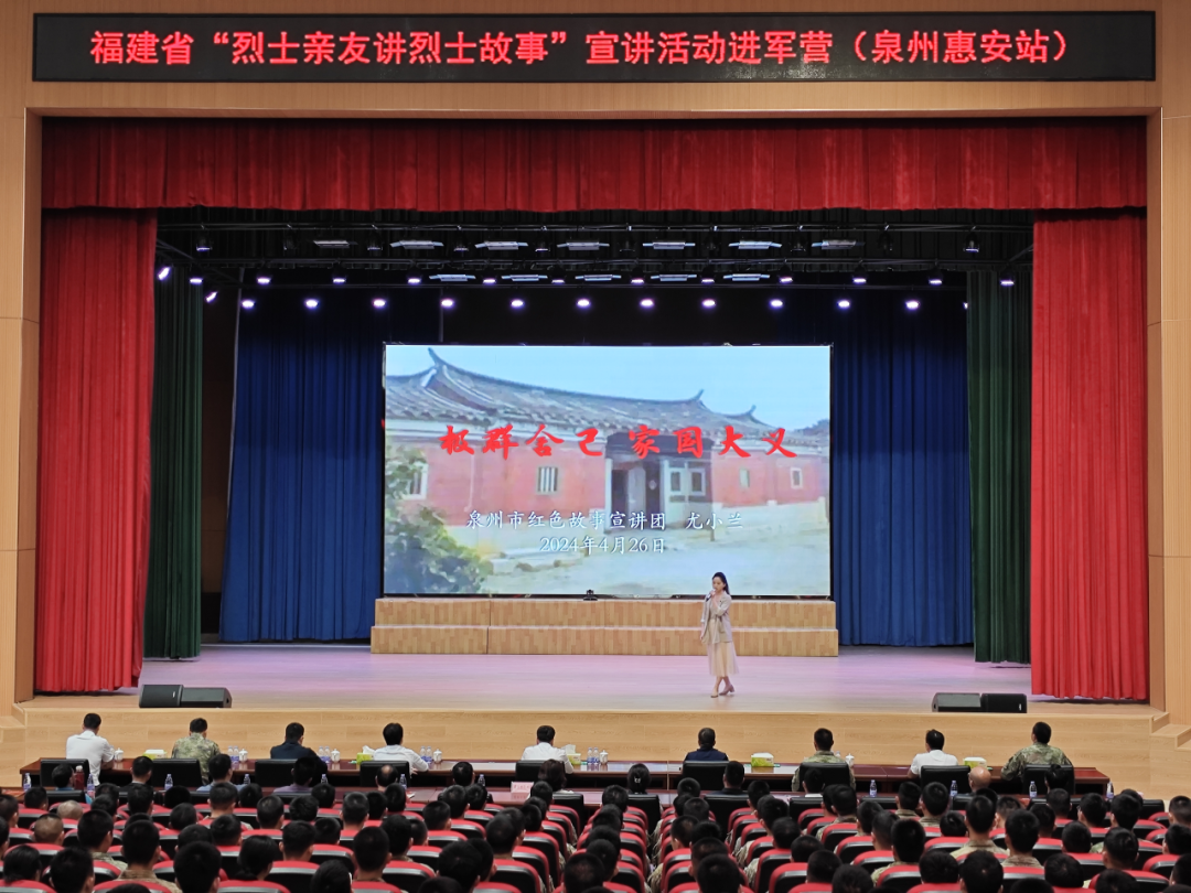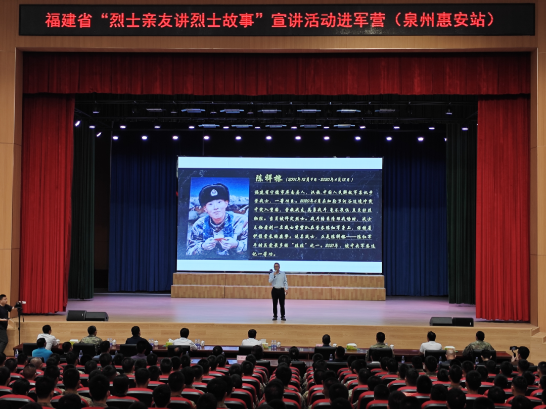 “聆听英雄故事,传承红色血脉,发扬革命传统,谱写时代新篇”,4月26日上午,全省“烈士亲友讲烈士故事”巡回宣讲进军营活动在驻惠安某部队举行。本次宣讲活动共邀请6名烈士亲友,讲述八闽英烈为民族独立解放,为祖国边境安定而英勇牺牲以及烈士亲属深明大义,传承红色基因的感人故事。活动在雄壮的国歌声中拉开序幕,全体人员肃立,为烈士默哀。