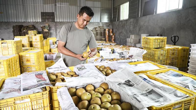 “有小傅在,我不怕梨卖不出去。”67岁的老陈,家住戴家村,管理着600多棵果树。他介绍,以前,很多像他这样的散户,都要自己去联系外地来的收购商,只能按照需求“凑单”,这些年,傅成福总会优先为村里的果农考虑,合理安排果农采摘,让大家的果卖得出、卖得好。