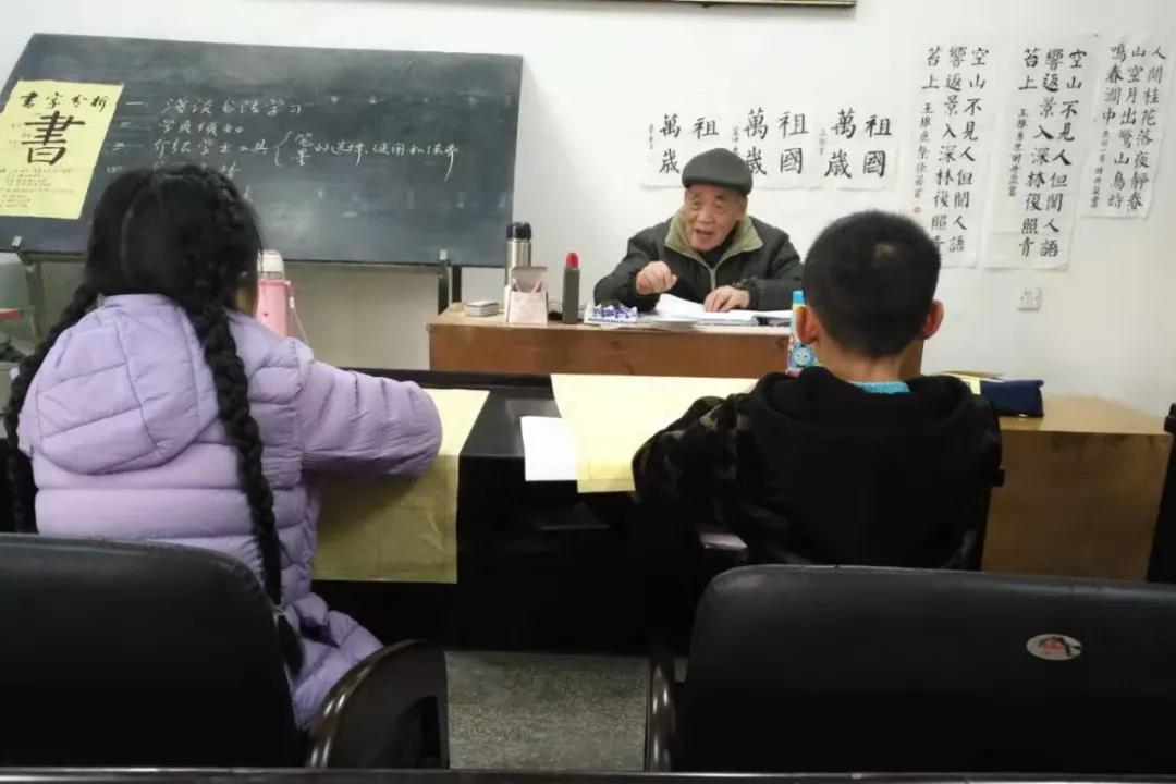 为提升教学效果,吴思安坚持收看中央书画频道、少儿书法班全程教学,多次到省、市书法培训机构观摩听课,学习教学经验,改进教学方法。经过综合考量,吴思安选用《颜真卿勤礼碑(胡三元学生字帖)》为课本,结合自编教材,形成了一套自己的教案。课上,他还通过宣讲中国书法史、文字演变史等,弘扬中华优秀传统文化;给学生们讲古人勤学苦练书法的故事,培养刻苦学习的学风……他认为,“文化是本,书法更是容纳沉淀中华文化的瑰宝,只有在学好文化的基础上,才能更好领会书法的内涵精髓。”