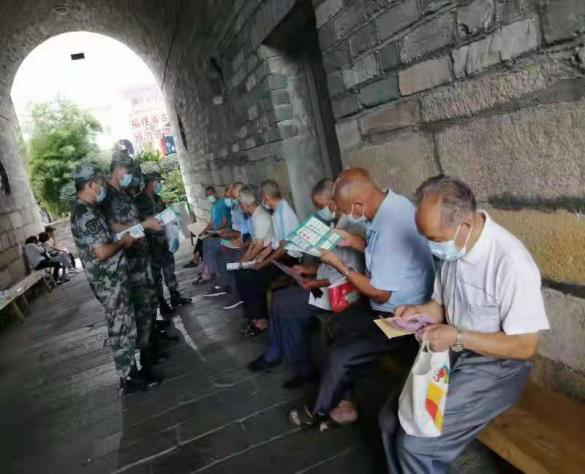 △汀州退役军人先锋队队员们现场对老人们发放防疫知识宣传单并仔细讲解防疫知识