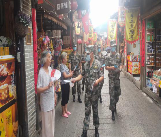 △汀州退役军人先锋大队队员们走街串巷宣传疫情防控知识