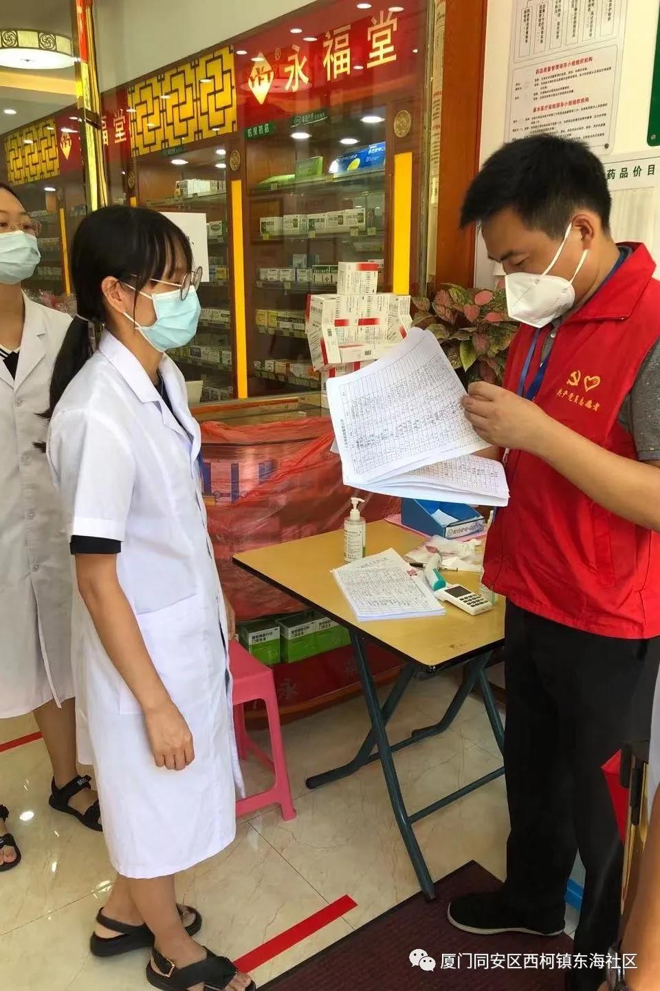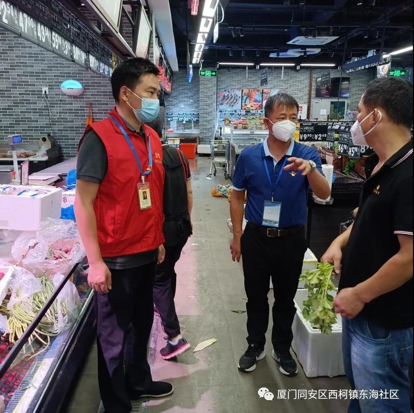 △在药店、超市检查工作,与负责人及时沟通,确保社区居民生活物资的正常