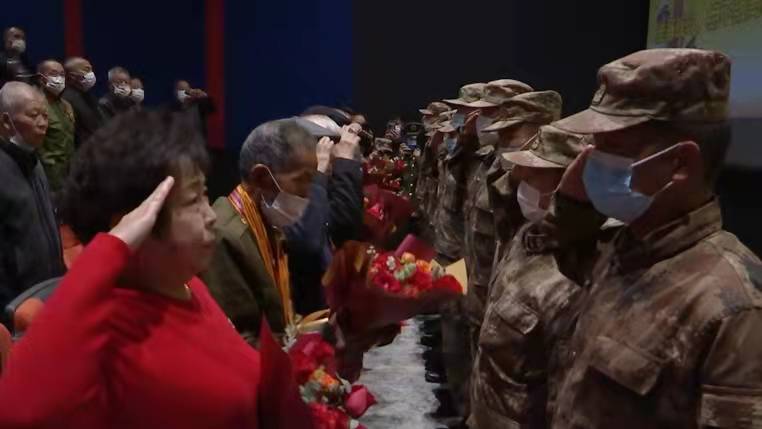 接收到官兵们献上的鲜花,老兵们十分高兴,纷纷表示,组织这样的活动十分有意义,既是观影也是传承,他们用一个个“军礼”再次表达最崇高的致敬!