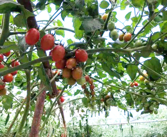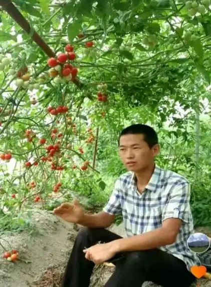 郑海华(左)小番茄种植区(右)
