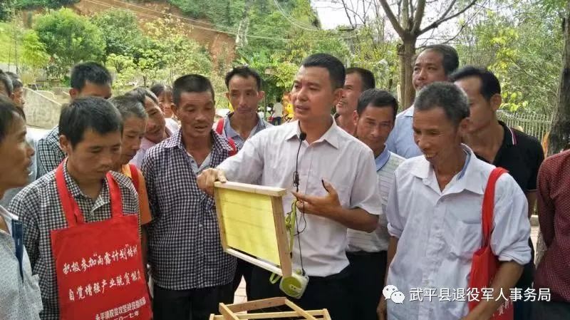 ▲钟亮生免费为残疾人、退役军人、贫困户开展养蜂培训