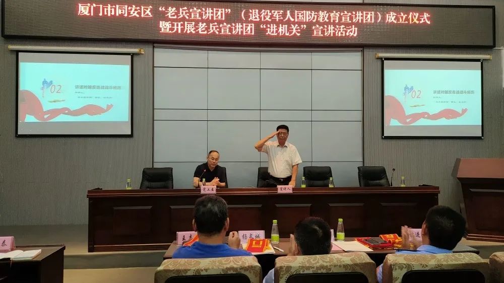 下一步,同安区退役军人事务局将结合“最美退役军人”和“最美拥军人物”学习宣传活动,借助“老兵宣讲团”的平台,开展进校园、进军营、进机关、进社区、进乡村、进企业的“六进”活动,充分运用党的百年奋斗历史经验,深刻践行伟大建党精神,弘扬光荣传统、赓续红色血脉,厚植青少年、干部群众崇军爱国情怀,充分营造出心系国防、尊崇军人的浓厚氛围,以优异成绩和实际行动迎接党的二十大胜利召开。