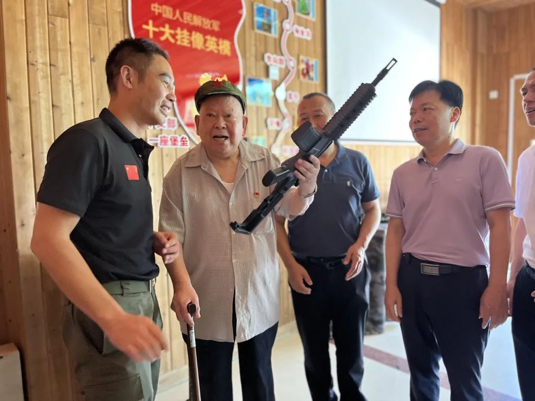 王天水老战士抚摸着基地那些作战武器仿真模型,勾起了他脑海最深处那段赴朝作战的艰苦岁月。他对以前那些武器模型的型号和使用性能如数家珍,特别看到泉州市退役军人志愿者服务队队长冯志荣在介绍95式步枪模型时,立刻提醒:“枪口要朝天,不能对着人“。那种融在血液里的战斗意识和战斗纪律,让在场人员无不动容。当他看到现代海军杭州舰护卫舰和空军歼20战斗机模型时,激动万分地说:“祖国强大了!当时朝鲜战场上连飞机都没有。”