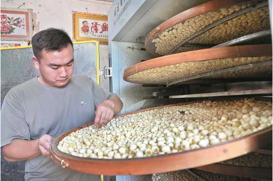 上龙头村种植白莲,多年来因缺少人手,加上销路不畅,严重影响了村民的种植积极性。2021年5月,张春林筹资20多万元,创办了济村乡首家白莲加工厂,解决了当地白莲加工难的问题。“江西石城、广昌等地种植白莲的历史比较早,加工技术也成熟。”白莲采收前夕,张春林带领5名村民外出学习白莲加工技术。