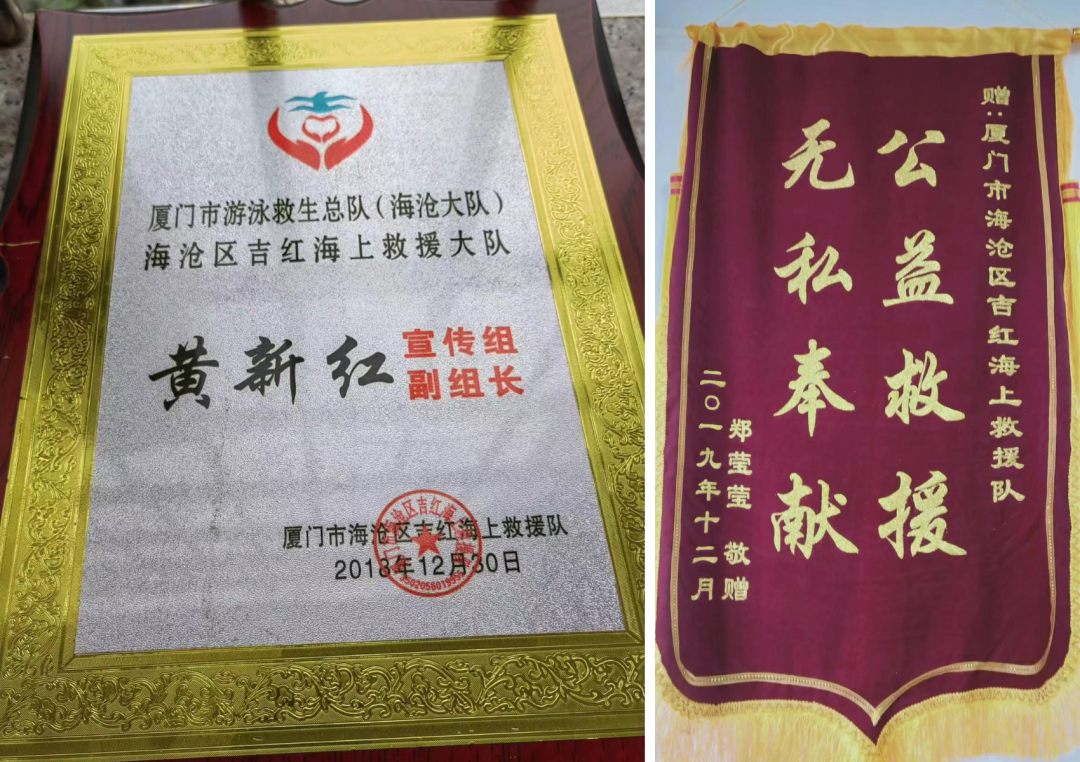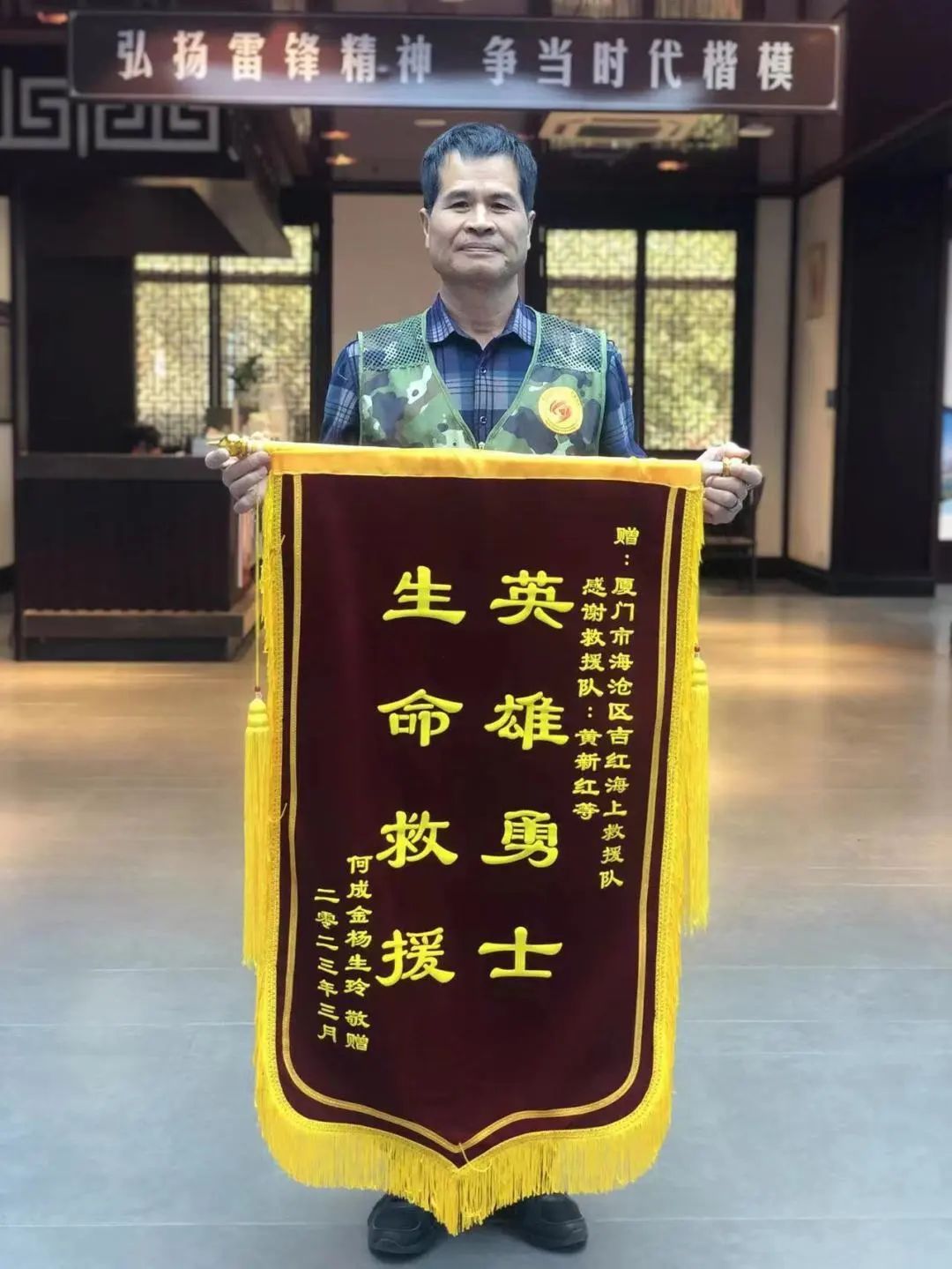 其实,这已经不是黄新红第一次救人了。2017年,黄新红加入厦门市海沧区吉红海上救援队,成为一名光荣的救援队队员。他常常舍弃自己的假期,坚持义务参与海沧湾水域巡逻劝导、救援及环保行动。平常他在海边巡逻时,遇到光脚受伤的路人就积极帮助他们包扎伤口,提醒前来游玩的游客们注意安全、更是遇到了好几次落水的溺水者。