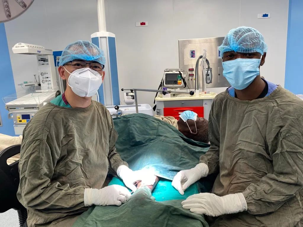 2022年,在新冠肺炎全球肆虐,在奥密克戎变异病毒引发全球传播的特殊时刻,医院授命组成援赞医疗队支援非洲。得知这个消息时,黄智勇毫不犹豫地在第一时间报名。他说:“我对那边熟悉,我有援外的经验,外语底子也好,可以在艰苦的条件下帮助医疗队其他成员尽快进入状态,减少适应磨合时间,更好地为患者服务。”