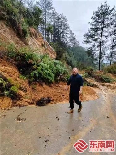 2022年6月,持续降雨造成山体滑坡堵塞村道,陈开基在现场处置