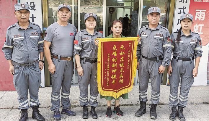 9月25日,来自新阳镇葛竹村的3位村民来到城关镇,为救援队送上了“无私支援见真情危难时刻伸援手”的锦旗,感谢队员们帮助寻回走失的家人。