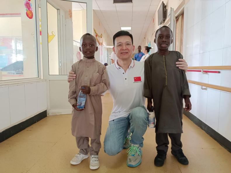 最后,我想向迪亚姆尼亚久儿童医院院长、合作伙伴和全体工作人员表示祝贺和鼓励,你们为医院的发展和与中国医疗队的合作做出了贡献。