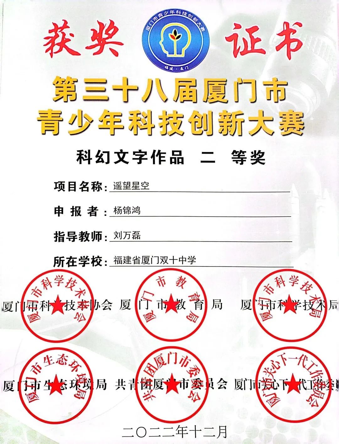学于斯、长于斯。我不仅是54个孩子的班主任,也是(7)班和(8)班的语文教师,为同学们答疑解惑,和他们一起奔赴赛场,指导学生在竞赛中创造佳绩,也让我感受着教书育人的快乐。