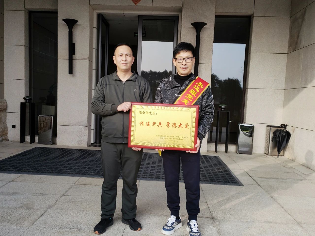 2022年,漳浦县退役军人事务局拟成立退役军人关爱基金。该局负责人找到陈金伟,介绍关爱基金成立的初衷。没想到,陈金伟当即同意捐款5万元作为启动基金。这些年,陈金伟不仅过年过节看望慰问困难群众、退役军人,还在家乡创办公司,为家乡的新农村建设注入新鲜的活力。