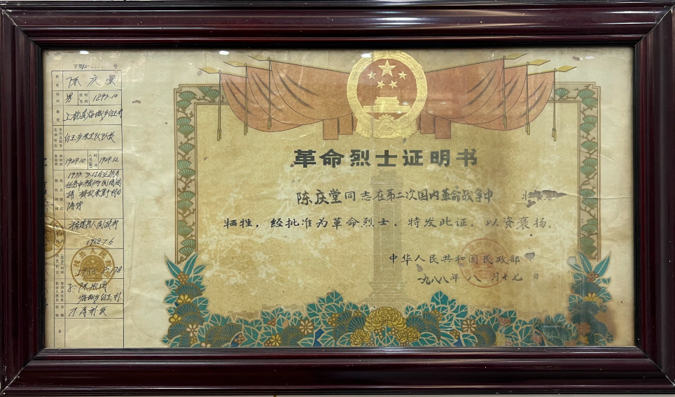 爷爷:陈庆堂烈士——保家卫国,壮烈牺牲
