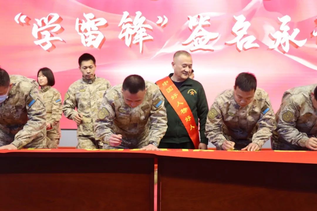 报告会的最后,官兵和学生在“学雷锋铸忠诚、学雷锋讲奉献、学雷锋树新风”条幅上集体签名,许下学雷锋精神、做雷锋传人的庄严承诺。