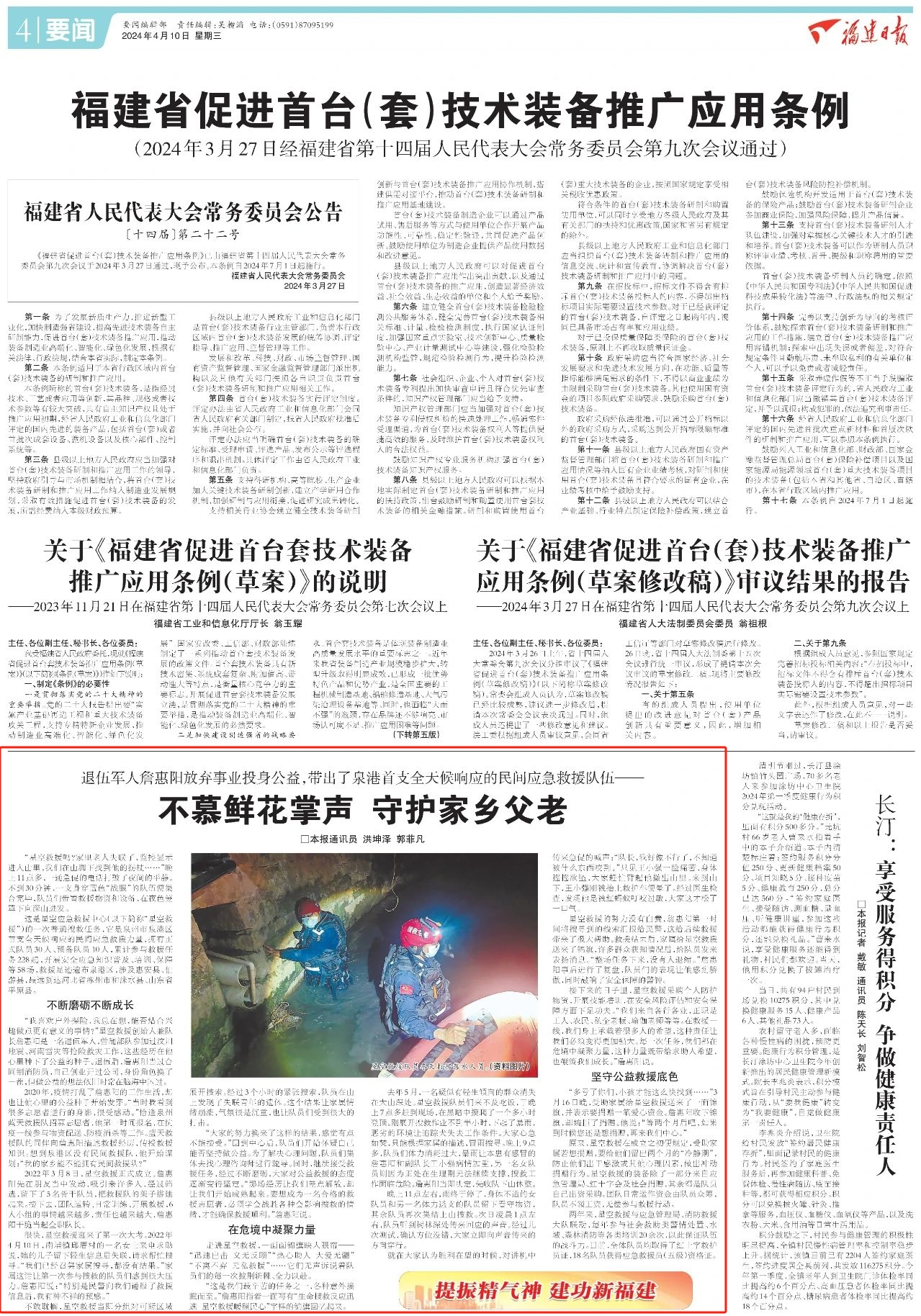 2020年,疫情打乱了詹惠阳的工作生活,却也让他心里的公益种子开始发芽。“当时我看到很多志愿者逆行的身影,很受感动。”恰逢泉州蓝天救援队招募志愿者,他第一时间报名,在抗疫一线参与物资配送、防疫消杀等工作。蓝天救援队的同伴向詹惠阳描述救援经历,传授救援知识。想到泉港区没有民间救援队,他开始谋划:“我的家乡能不能拥有民间救援队?”
