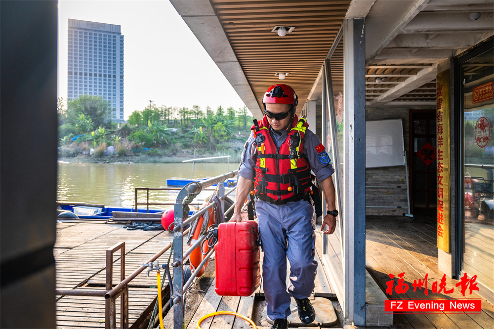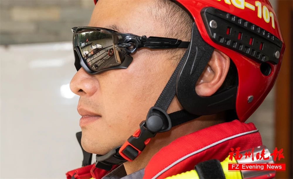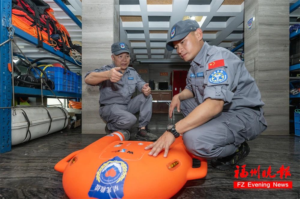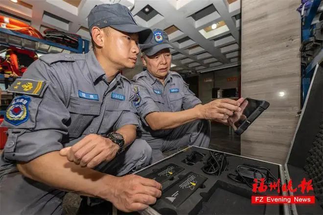 吴霄翔(右)与欧阳光(左)在操作救援设备