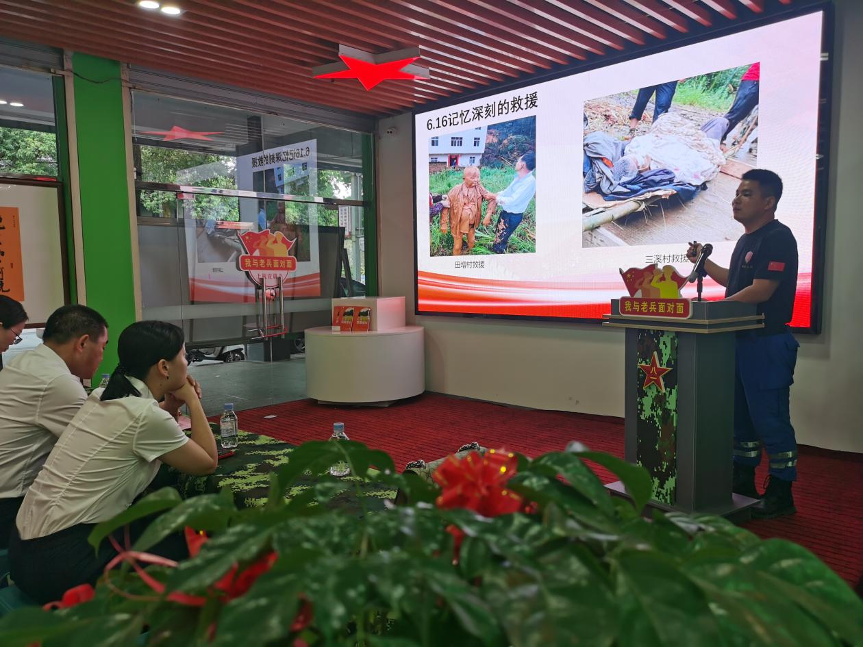 8月1日,刚刚荣获“全国模范退役军人”的凌徵鹏参加了上杭县退役军人事务局举办的“我与老兵面对面”宣讲活动。他以“急难险重老兵担当——‘6.16’特大洪灾救援纪实”为题,深情讲述了自己在面对自然灾害时,挺身而出,带领救援队伍冲锋在前的事迹,用实际行动诠释了退役军人的责任与担当。凌徵鹏的事迹深深打动了在场的每一个人,激发了大家强烈的共鸣与敬佩之情。
