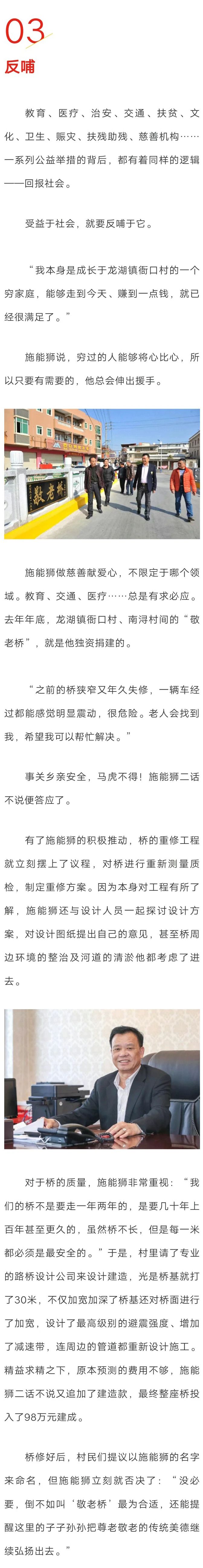 编者按:退役不褪色,建功新时代。为深入贯彻落实习近平总书记关于退役军人工作重要论述和党的二十届三中全会精神,近日,省委宣传部、省退役军人事务厅、省军区政治工作局共同发布2024年福建省“最美退役军人”。从9月27日开始,厅官微官网开设专栏,讲述深藏于老兵记忆中直抵人心的细节,跟随老兵们的思绪,一起追忆那段峥嵘岁月,充分展示退役军人永葆本色、奋发图强的优秀品质和“退役不退志,退伍不褪色”的精神风貌,汲取“榜样”的精神营养,化为不竭前行的奋进力量,传递社会正能量。今日关注信义集团董事、深圳恒通源环保科技有限公司董事长施能狮的先进事迹。