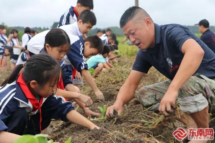 曹水兴带着学生在田里开展实践 东南网记者 肖晓敏 摄