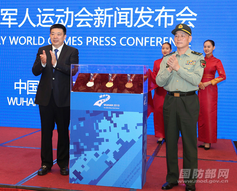 10月10日上午,军运会执委会在武汉会议中心举行第七届军人运动会奖牌发布暨颁奖物资展示新闻发布会,正式揭开了本届军运会奖牌、奖杯等颁奖物资的神秘面纱。