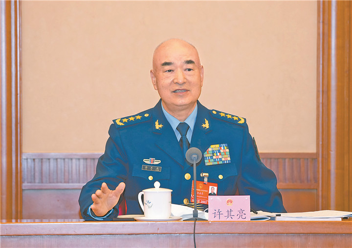 许其亮代表参加分组讨论。新华社记者 李 刚摄