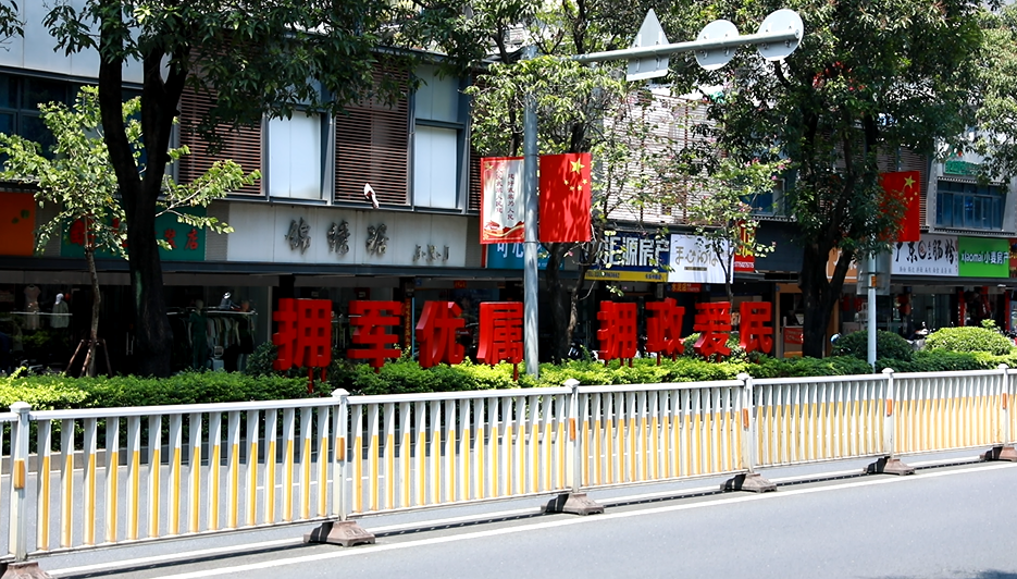 “福州双拥示范街”位于晋安区长乐中路,总长1.2公里,贯穿城区重要商圈,沿街布置拥军优属、拥政爱民、双拥共建、爱国拥军、富国强兵、爱民奉献、共进和谐、军民同心等八大板块,全方位展现双拥工作内涵。
