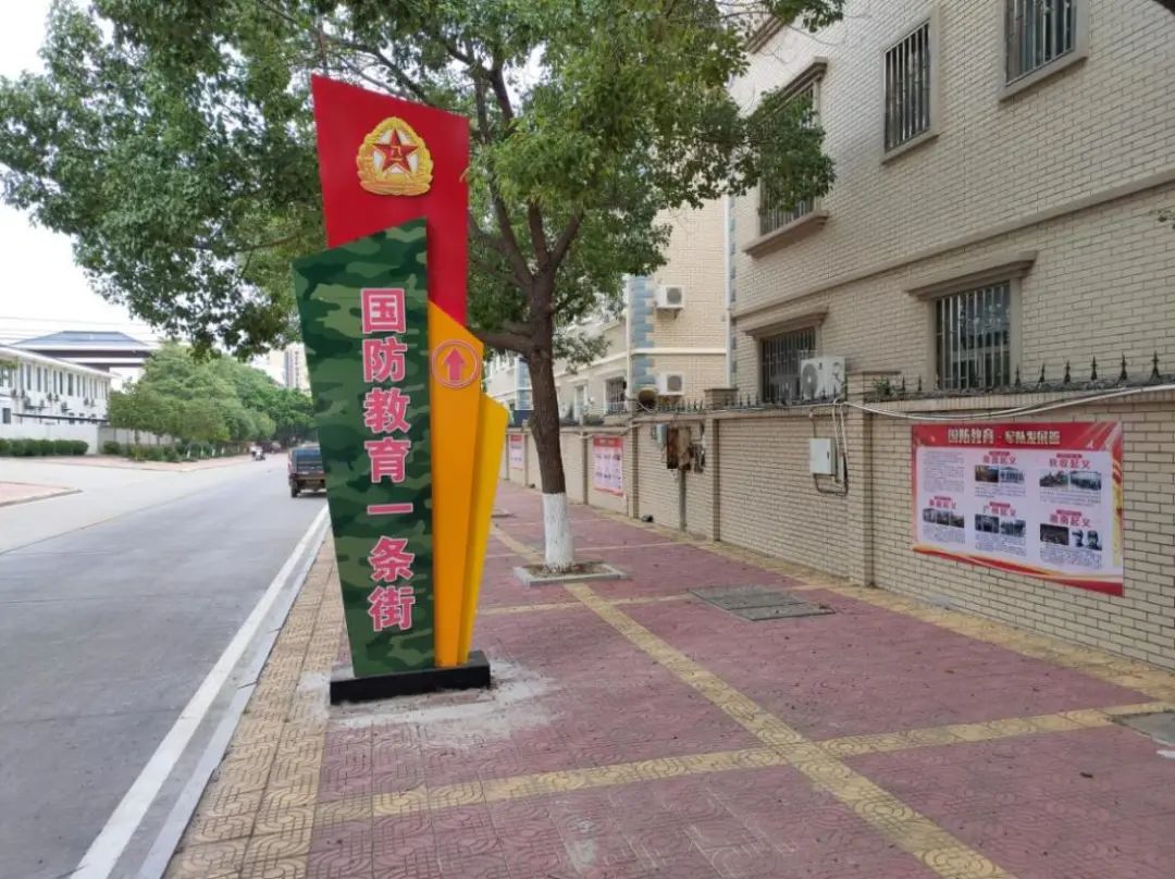国防教育一条街,与一个中心居民区(祥和小区)仅一墙之隔,开放的街区环境,让独具特色的国防教育可以润物无声音地融入当地居民的日常生活,耳染目濡,让广大群众既能够新时代文明创建中增长国防知识,又能感受国防文化魅力。