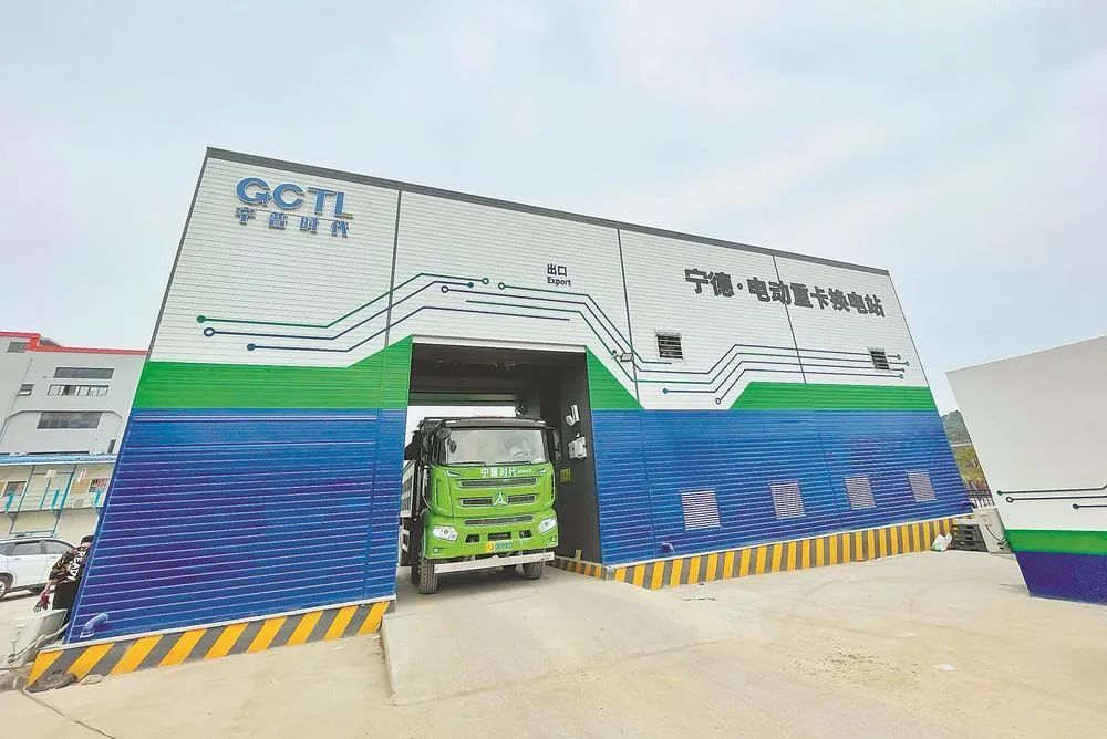 宁德时代在宁德地区试点设立电动重卡换电站。新华社 发
