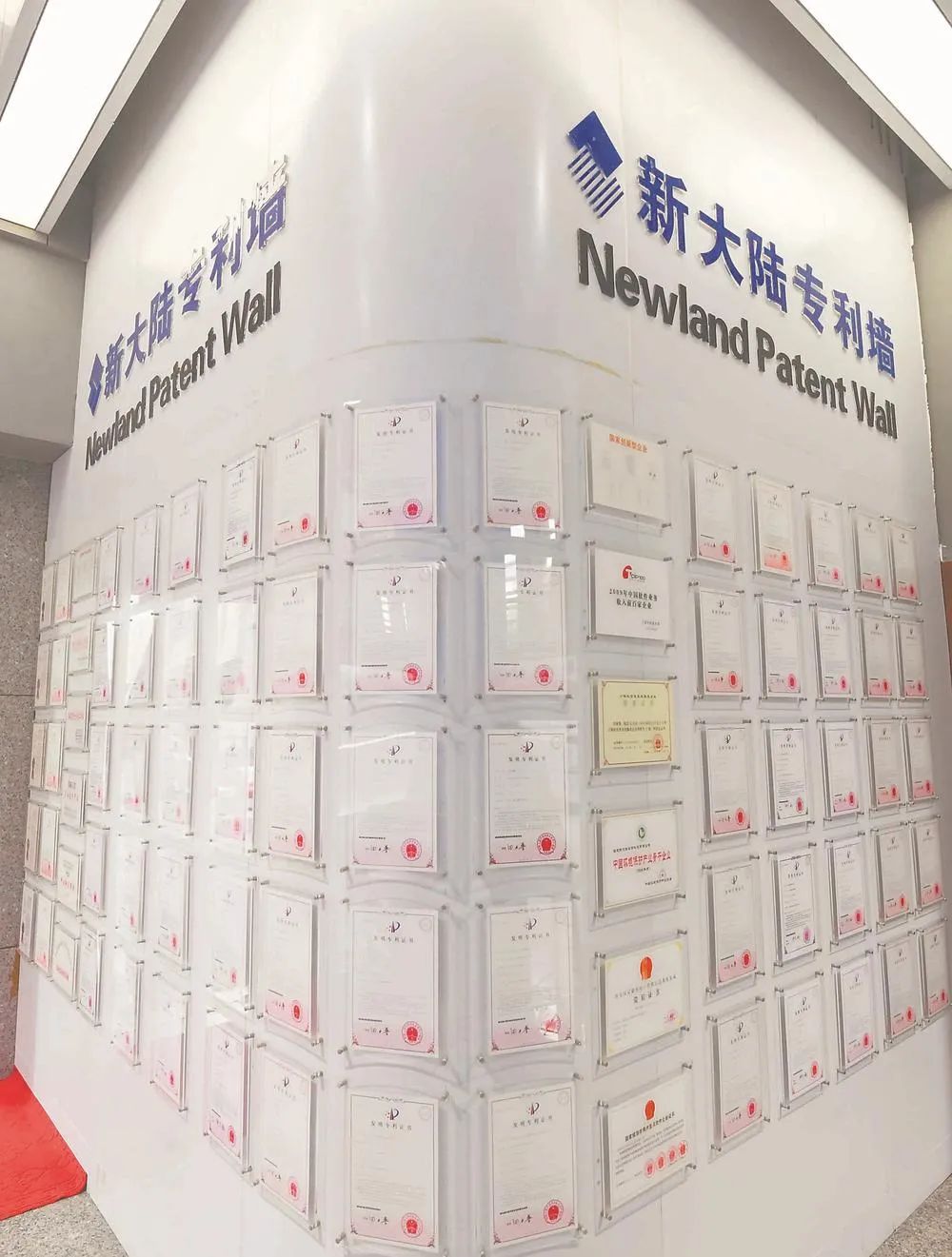 布满发明专利证书的新大陆专利墙。本报记者 游庆辉 摄
