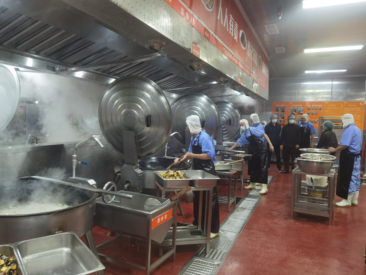 现场参观智慧化厨房自动蒸饭机、自动洗菜机、自动炒菜机、自动打包机等相关设施设备。