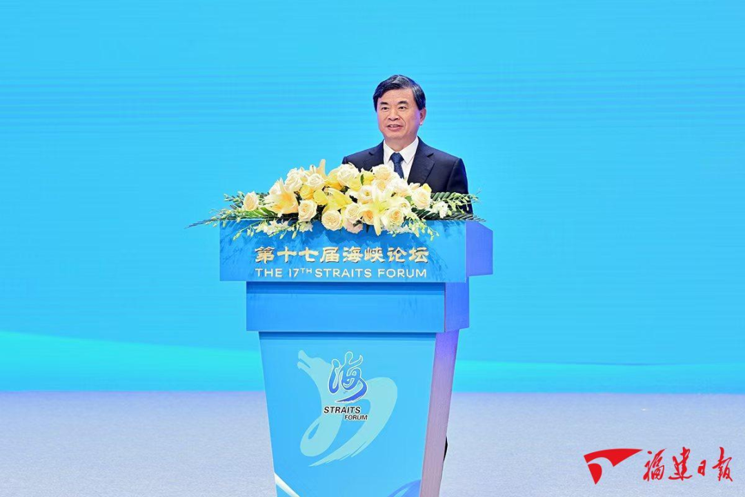 省委书记周祖翼在致辞中表示,十七届海峡论坛,见证了两岸同胞每年如期赴约、跨海相聚,见证了两岸同胞始终如一的心手相连、守望相助。福建坚决贯彻落实党中央决策部署,加快构建全域融合发展新格局,经济融合成效持续彰显,情感融合纽带持续拉紧,社会融合效应持续深化,促进两岸融合发展示范区建设走深走实。下一步,福建将牢记嘱托、接续奋斗,坚定不移扩大两岸经贸合作、深化闽台民间交流、增进台湾同胞福祉,为促进祖国统一大业作出新贡献。热忱欢迎广大台湾同胞积极参与两岸融合发展示范区建设,相向而行、携手打拼,共同把握发展机遇、共享融合成果,助力推动中华民族伟大复兴号巨轮乘风破浪、扬帆远航。