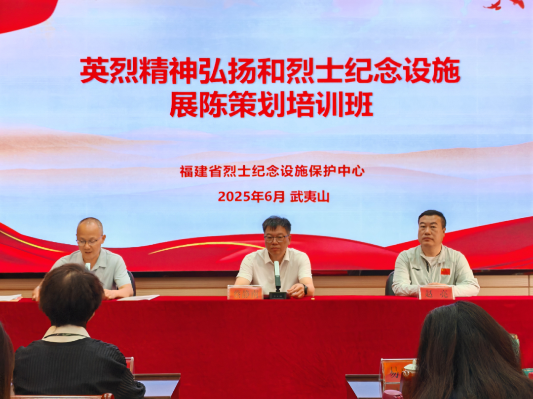 6月16日至19日,英烈精神弘扬和烈士纪念设施展陈策划培训班在武夷山举办。省退役军人事务厅党组成员、副厅长蔡静南出席并作开班动员讲话,省烈保中心负责人及全省烈士纪念设施管护单位干部及英烈讲解员等50人参加培训。