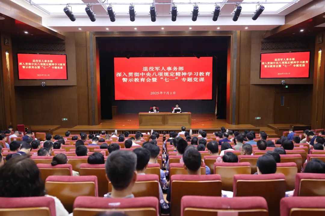 7月1日,退役军人事务部召开深入贯彻中央八项规定精神学习教育警示教育会暨“七一”专题党课。图为会议现场。曹舒昊摄