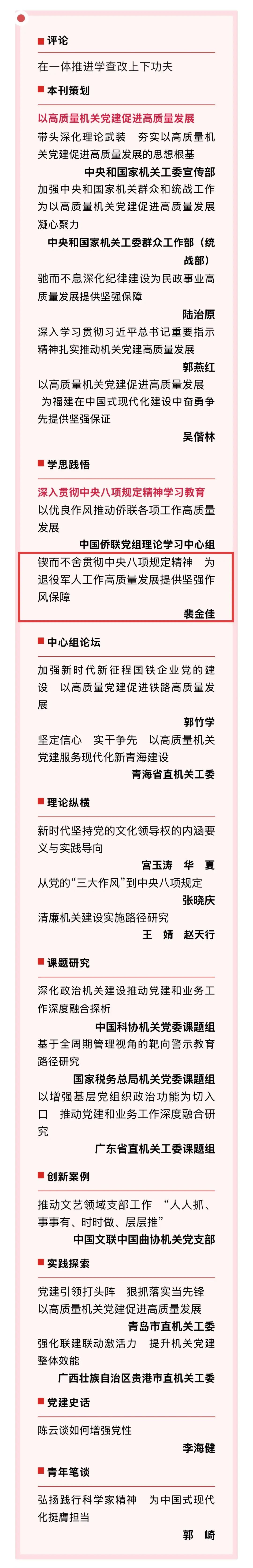 《机关党建研究》杂志2025年第6期发表退役军人事务部党组书记、部长裴金佳署名文章《锲而不舍贯彻中央八项规定精神为退役军人工作高质量发展提供坚强作风保障》,请看全文——