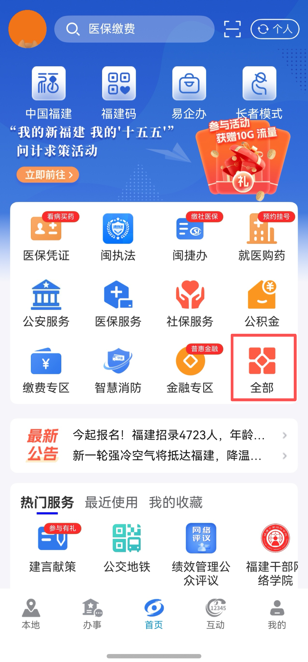 2.在“个人办事”中选择“优待抚恤”,选择“福建退役军人之家”进入退役军人专区;
