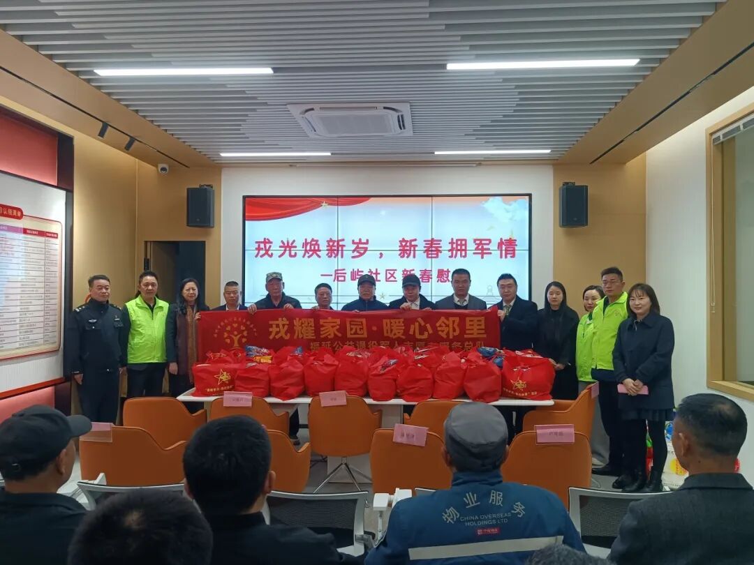 辞旧迎新,情暖老兵。2月11日,在马年春节来临之际,由福建省退役军人关爱基金会、福建省退役军人服务中心、福州市福延公益慈善服务中心、福延公益退役军人志愿者服务总队在福州市晋安区鼓山镇后屿社区举行2026年新春慰问退役军人活动。福建省关爱退役军人基金会理事长郑敏、副理事长陈星津,福州市福延公益慈善服务中心创始人李靖、执行理事长、志愿者服务总队总队长马斌、副理事长、执行总队长林碧海,鼓山镇副镇长陈孔琴、后屿社区党支部书记吴晓莉等出席,与社区退役军人代表共迎新春。