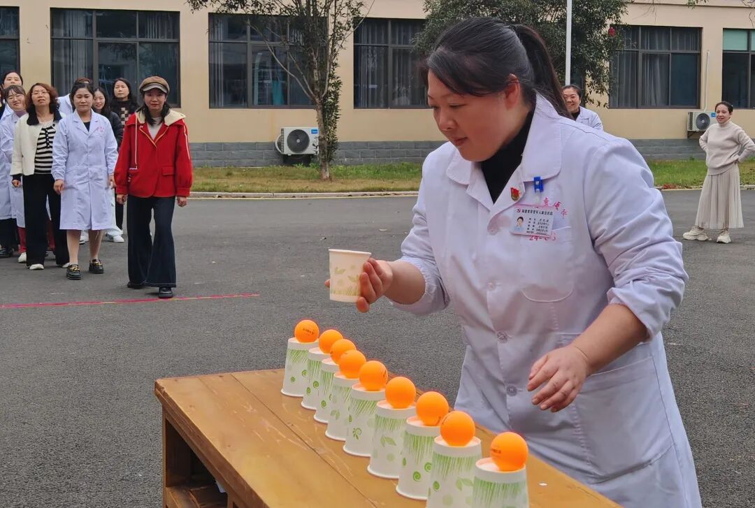 “纸杯接球”更是将活动推向高潮。选手们需要用纸杯将乒乓球抛起并稳稳接住,既考验手眼协调,更考验心理素质。一次次的尝试、一次次的坚持,展现了荣军医院女职工们坚韧不拔、勇于挑战的优良品质。场边啦啦队的加油呐喊声,更让整个赛场涌动着浓浓的团结暖意。