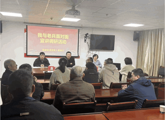 在永安市和将乐县退役军人事务局,同参战退役军人、残疾军人、青年退伍军人、基层干部开展“我与老兵面对面”宣讲活动,宣讲党的二十届四中全会精神,解读与退役老兵息息相关的政策条例,现场为老兵答疑解惑,虚心听取意见建议。活动现场反响热烈,老兵们表示宣讲座谈活动一方面让大家进一步弄懂政策、用好政策,另一方面也体现了退役军人事务部门对老兵们的重视和关心关爱,希望今后能够进一步加强沟通交流,增进感情。