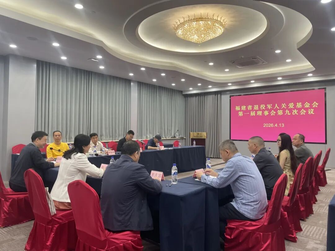 4月13日上午,福建省退役军人关爱基金会第一届理事会第九次会议在福州召开。会议传达学习2026年全国两会精神,审议理事会成员职务变动事宜,听取审议2025年度工作情况及2026年思路打算、2025年度财务工作及2026年度预算情况报告,审议2025年监事会工作报告,审议2026年项目计划安排。省退役军人关爱基金会理事长郑敏主持会议并讲话。监事长方彦国,省退役军人事务厅思想政治和权益维护处处长陈峥嵘,党建指导员出席会议。