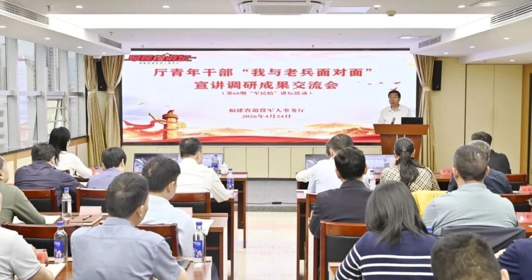 4月24日下午,省退役军人事务厅举办第68期“军民情”讲坛,4名青年干部代表交流“我与老兵面对面”宣讲调研成果。厅党组书记、厅长罗庆春出席会议并讲话,厅党组成员、副厅长陈建辉、蔡静南参加,省直团工委三级调研员王玮受邀到会指导。