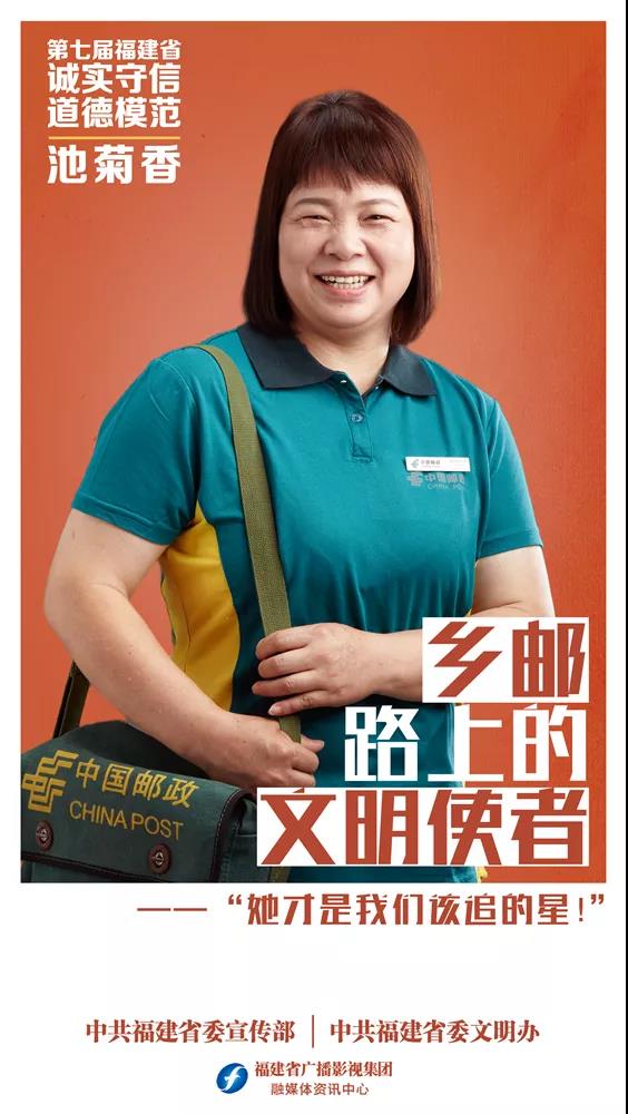 池菊香,女,1975年1月出生,邮政福建省闽清县分公司上莲支局投递员。闽清县上莲乡地处偏远,有许多高山村庄,一些自然村离上莲乡邮政支局有10多公里,只有崎岖不平的山路可以到达。池菊香负责上莲乡11个行政村近8000个常住人口的邮政工作。多年来,她在平凡岗位上默默付出,用坚定不移的守在大山、服务大山的信念,践行着邮政人的初心和使命。